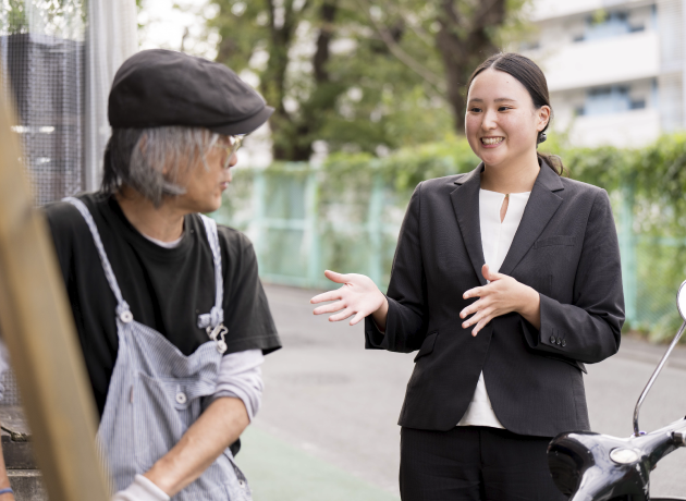 城南信用金庫への就職活動で印象に残っているのは、面接時の採用担当の方の対応です。入室前に身だしなみを確認してくれたり、緊張をほぐすように声をかけてくれたりしました。学生一人ひとりに優しく接するその姿に、好感を持ったのを強く覚えています。就職先としてさまざまな金融機関が候補としてありましたが、職員の温かさという観点では城南信用金庫が一番でした。ここで働きたい。そしてこの人たちのようになりたいと強く入庫を決意しました。現在はLAとして、集金業務をメインとしながら、お客様とのコミュニケーションを通じた提案活動などを行っています。いかにしてお客様と親密な関係性を築くのかがLAとしての重要な点なのですが、私はまず自分から心を開くことを意識しています。最近嬉しかった出来事や、飼っている動物の話、時には悩みを話すこともあります。そういった日常会話で仲を深め、お客様の方からご相談などがあった際には、保険・資産運用・相続対策など、城南信用金庫がいろんな点でお役に立てることを示していくのです。